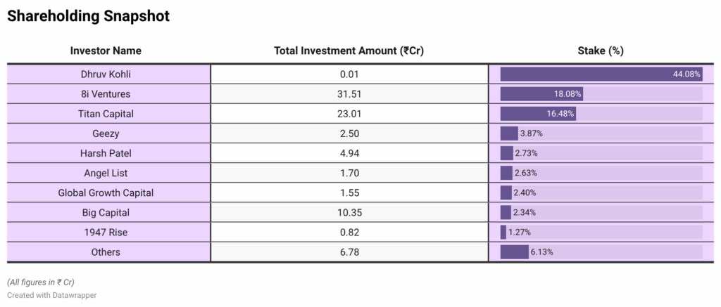 • Strong founder-led vision with investor backing, though the founder stake is below majority, which may lead to dilution in future rounds.