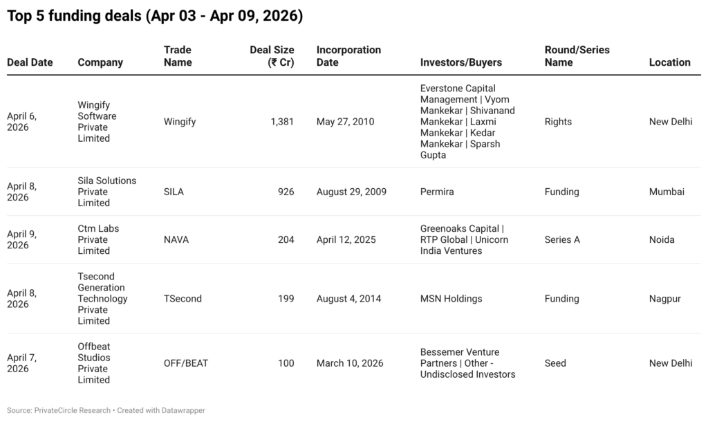 Top 5 Funding Deals (Apr 03 to Apr 09, 2026)