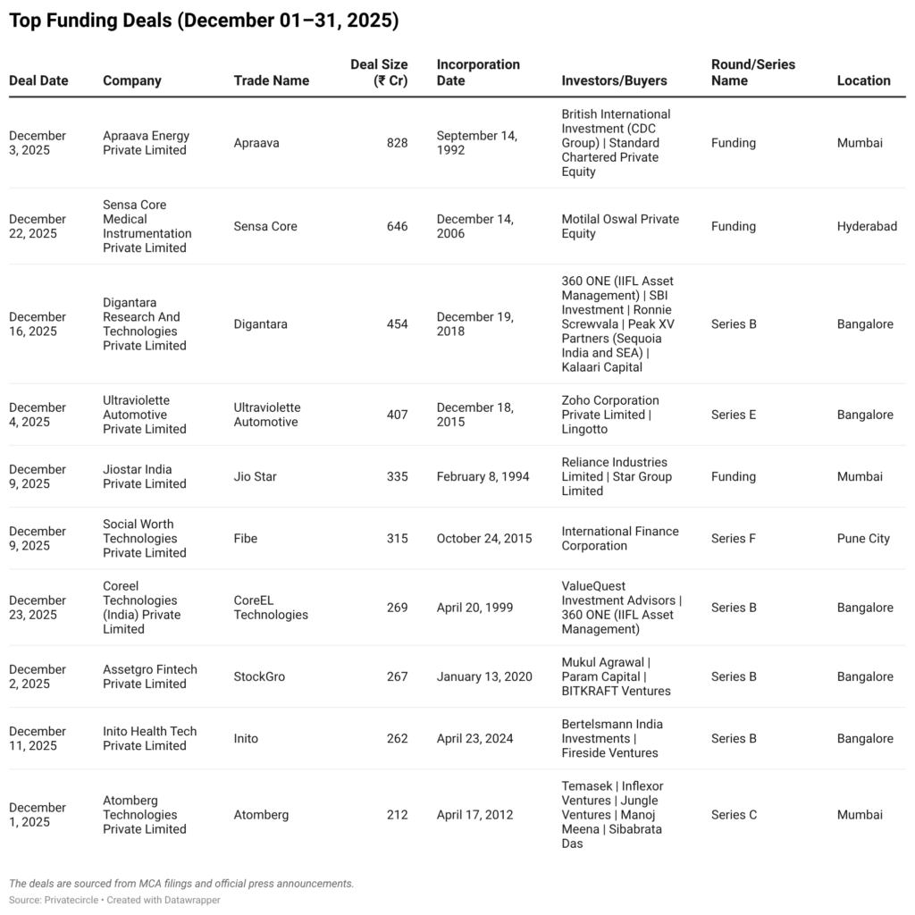 Top Funding Deals (December 01–31, 2025)