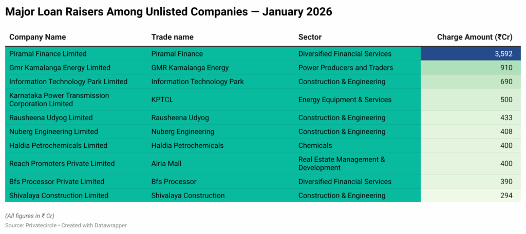 India’s unlisted corporate sector entered 2026 with sustained momentum in institutional borrowing. January witnessed sizeable debt raises across financial services, power, infrastructure, and construction, underscoring continued lender confidence in asset-backed and cash-generating private companies.