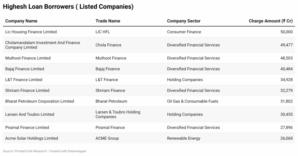 Based on MCA charge filings, this report highlights the top 10 listed Indian companies with the highest loan borrowings in 2025, offering a snapshot of where private capital demand was strongest.